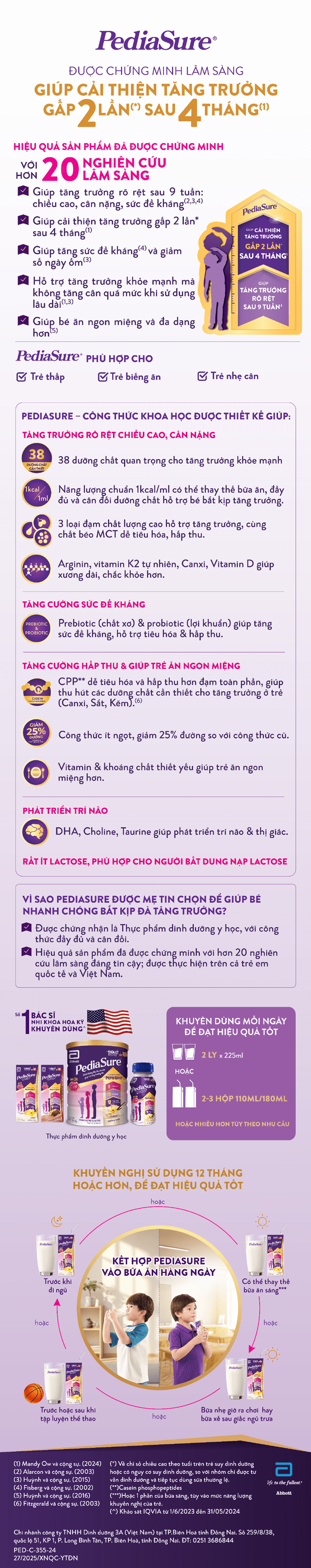PEDIASURE – CÔNG THỨC KHOA HỌC ĐƯỢC THIẾT KẾ GIÚP: