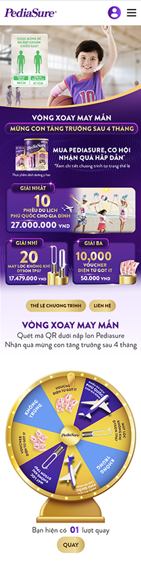 - Bước 1: Ngay sau khi khách hàng quét mã QR trên khung treo quảng báo, băng rôn thì điện thoại sẽ chuyển đến giao diện Hệ thống (Tại trang web (https://pediasure.abbottvietnam.com.vn/4-thang-cai-thien-tang-truong/lucky-draw).