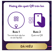 - Mã QR dùng để quay thưởng được in trên lon sản phẩm khuyến mại, ẩn bên dưới một lớp bạc để đảm bảo mỗi khách hàng mua sản phẩm đều có được cơ hội tham gia chương trình.