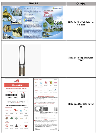| Giải 3 | Phiếu quà tặng điện tử Got It | 50,000 | 10,000 | 500,000,000 |
