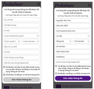 - Mọi công dân Việt Nam 18 tuổi trở lên đang sinh sống tại Việt Nam và là khách hàng (KH) mua một trong các sản phẩm PediaSure 400g/380g hương vani, PediaSure 850g/800g hương vani, PediaSure 1600g hương vani, PediaSure 10+ 800g/850g hương vani và đã có tài khoản trên website https://pediasure.abbottvietnam.com.vn/4-thang-cai-thien-tang-truong/lucky-draw (tài khoản được tạo trước hoặc được tạo trong quá trình diễn ra chương trình) có mua sản phẩm khuyến mại trước (sản phẩm chưa được quét mã QR) hoặc mua sản phẩm khuyến mại trong thời gian diễn ra chương trình.
